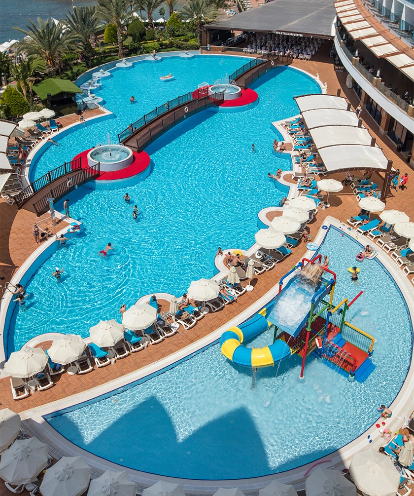 Granada Luxury Okurcalar’ın plajı ve havuzları, dinlenme ve eğlencenin mükemmel birleşimini sunuyor. İster ince kumlu plajda denizin tadını çıkarın, ister çeşitli havuzlarda serinleyerek keyifli anlar geçirin. Aileler için özel alanlar ve dinlendirici atmosfer, tatilinizi unutulmaz kılacak